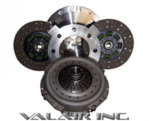 Kit includes: New Nodular Sprung hub NV5600 Dual Disc Flywheel, 3800# Pressure Plate, Organic Clutch Discs, Release Bearing, HD Pilot Bearing, Modified Clutch Fork, Bolt Kit, and Alignment Tool.