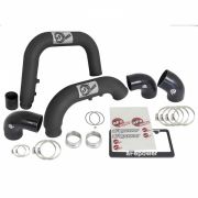 aFe Power's intercooler tubes are constructed from 2-1/2" (Hot Side) and 3" (Cold Side) mandrel-bent aluminum tubing for maximum flow then, powder-coated for a nice finish. The high-temp wrinkle-black powder-coating also insulates the tubes from engine heat and protects the tube from corrosion. The smooth transition bends decrease turbulence, minimize pressure loss, while increasing horsepower and torque. Also included is one 1/8" NPT port on each tube which is provided for a sensor or water-methanol injection.