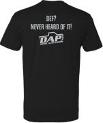 DAP 2ND Gen Grille Shirt, these shirts are 60% Cotton and 40% Percent Polyester. They are soft and comfortable. And as an added bonus they look great! This shirt has a 2nd gen grille and headlights on the front and on the back it says "Def? Never heard of it!"