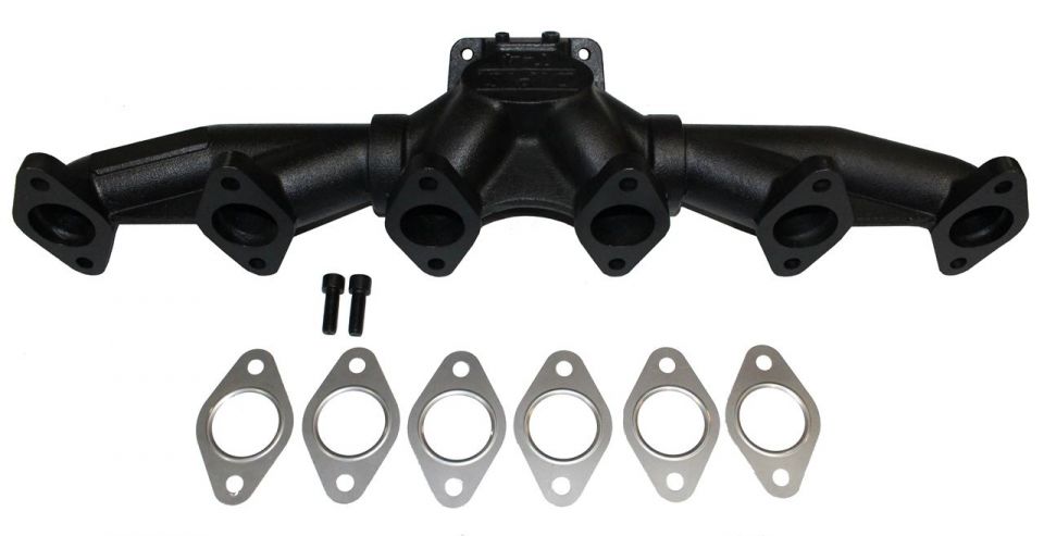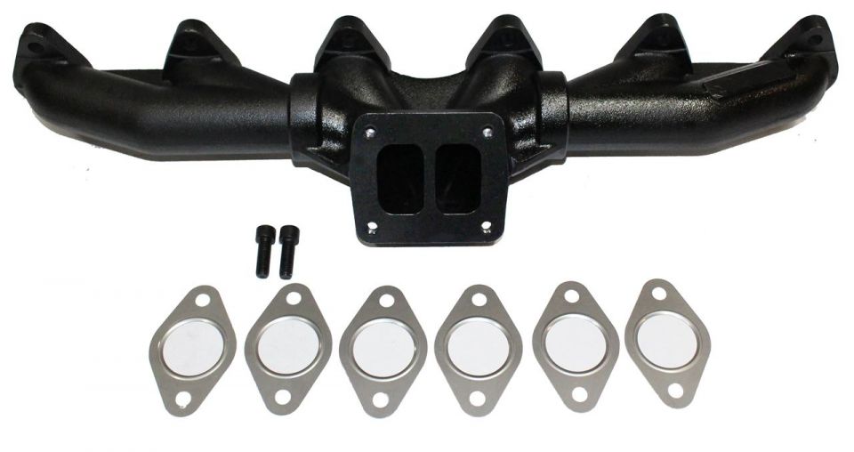 DPS T4 Exhaust Manifold for Dodge Cummins T4 manifold is a 3-Piece design to prevent cracking. Cummins exhaust manifold for AFTERMARKET turbo on Dodge Ram (NOT FACTORY TURBO). Our Dodge Cummins Exhaust Manifold fits all 5.9 & 6.7 24V heads. If you're considering a Steed Speed T4 manifold, DPS T4 Cummins manifold has the highest flow efficiency available, and is the best Cummins T4 manifold.