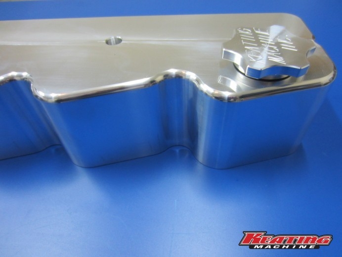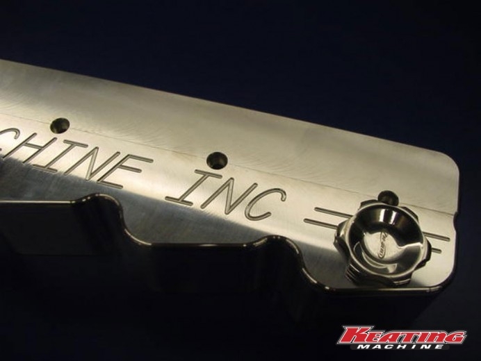 One piece billet valve cover fits 5.9L Cummins 12 valve. Designed for aftermarket injection lines run either over top or around front and back of cover. 3.25″ total height will clear most all aftermarket studs. Taller than stock covers. Also acts as a girdle for the rocker pedestals to help stabilize them when using high spring pressures and rpm. Engraved with Keating Machine logo on top. Can be ordered custom engraved or without engraving, call for details. Sealed with individual o-rings to head. We also stock these notched to fit over stock injection lines.
