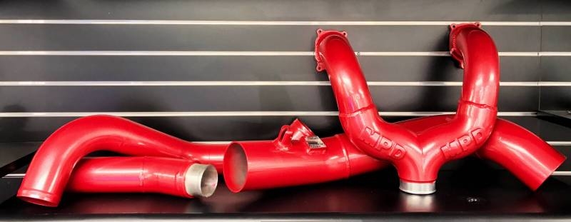 This is our in house built Intercooler Piping kit, Tailor Made to work with either one of our MPD turbo kits, or any stock or "stock style drop in" 2015 turbocharger Kits. It has a High Flowing Billet "y" pipe feeding the intake manifolds, Stainless hot & Cold Side Piping, and includes a high flowing intake! It comes in raw finish, But we can also have it powder coated the finish of your choice!