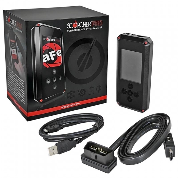 If you are looking to maximize your vehicle’s performance potential and drivability with a simple download, the aFe SCORCHER PRO Performance Programmer is for you. The SCORCHER PRO Performance Programmer is an all-in-one, performance programmer that provides specially calibrated tunes for vehicles equipped with aFe POWER products* delivering more horsepower and torque when you need it. With cloud based tune delivery and built in Wi-Fi capability, you can download aFe POWER’s custom tunes whenever or wherever you want it. With its data logging monitoring capabilities, you can display critical vehicle data using full color on-screen, customizable gauges. It's the ultimate in performance enhancements in that it is tailored to fit your vehicles specific modifications and ECU to perform perfectly and produce maximum power gains. The SCORCHER PRO Performance Programmer does not support any changes to your vehicle’s emission system.